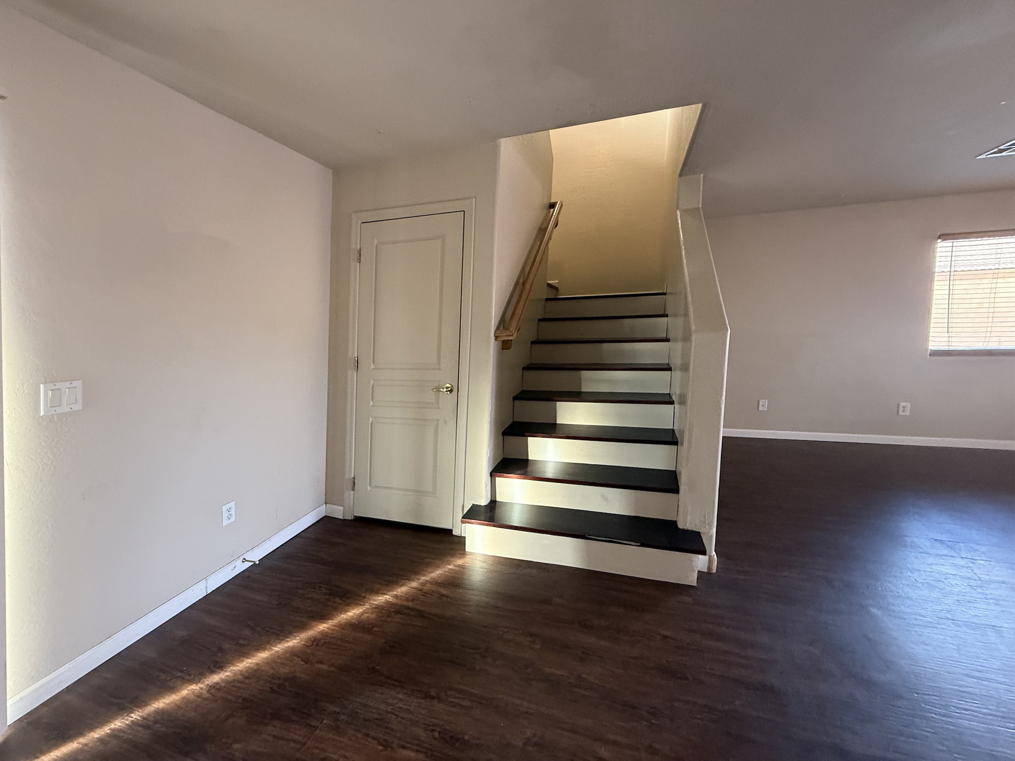 from Dining Area towards stairs to second story. On the left a door with a large storage area underneathe the stairs. |